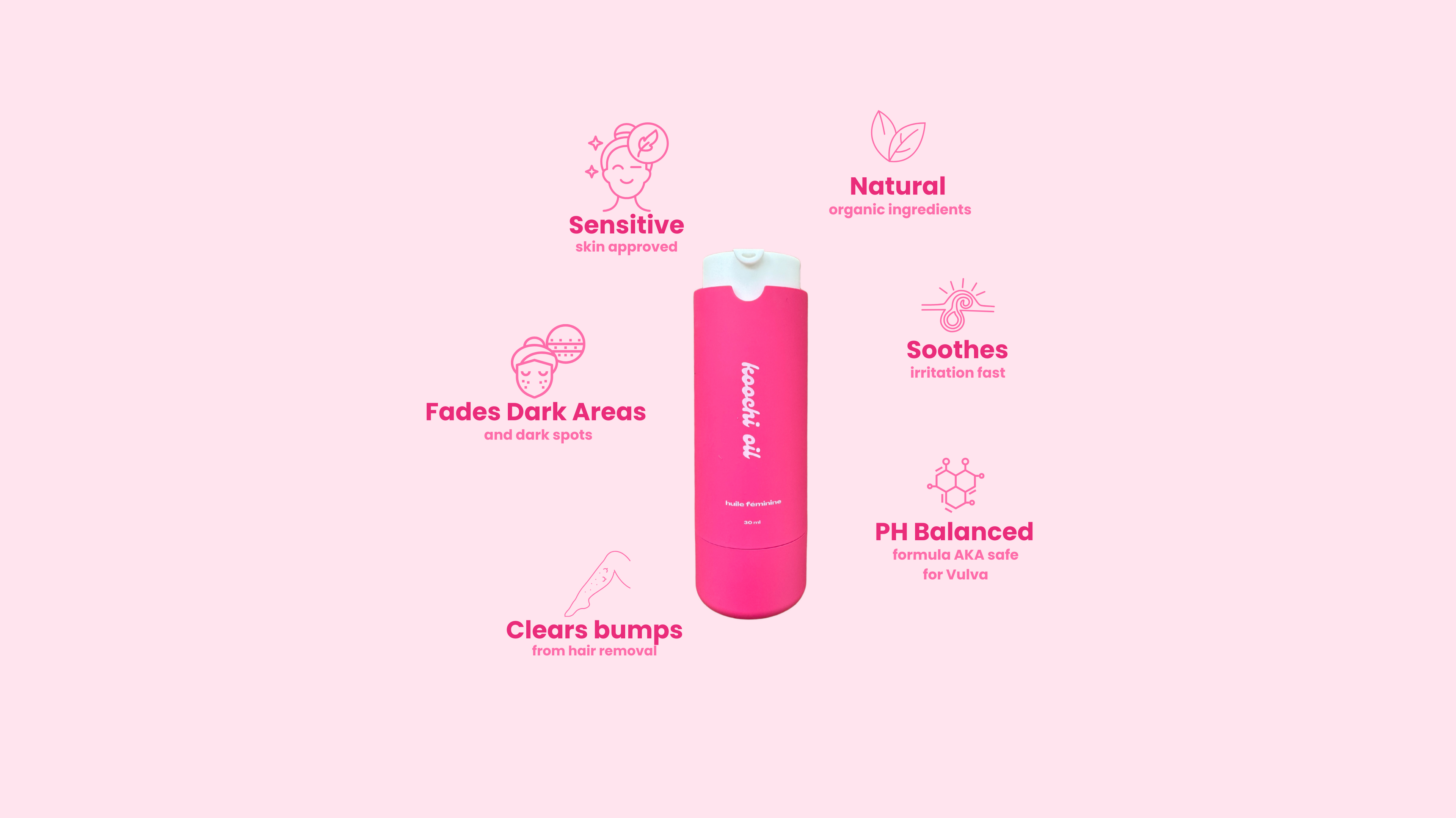 Start with Koochi Wash to gently clean and balance your skin. It removes buildup, keeps your pH happy, and is safe for your most sensitive spots. Bonus: it makes a dreamy, pH-friendly bubble bath too.